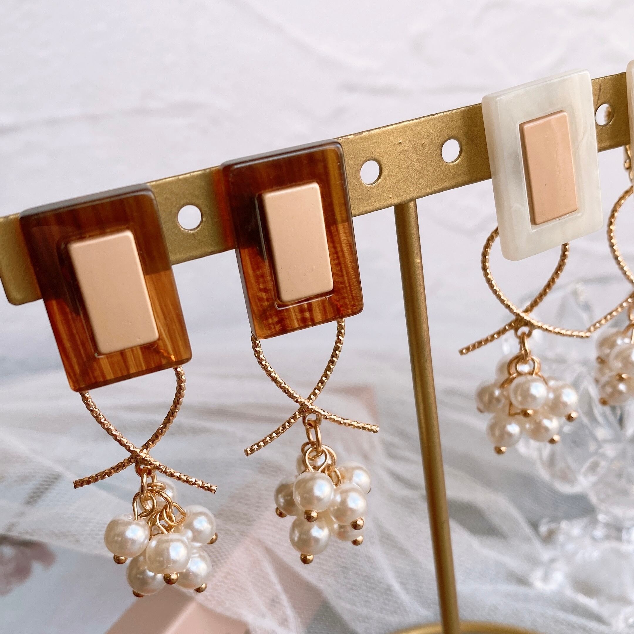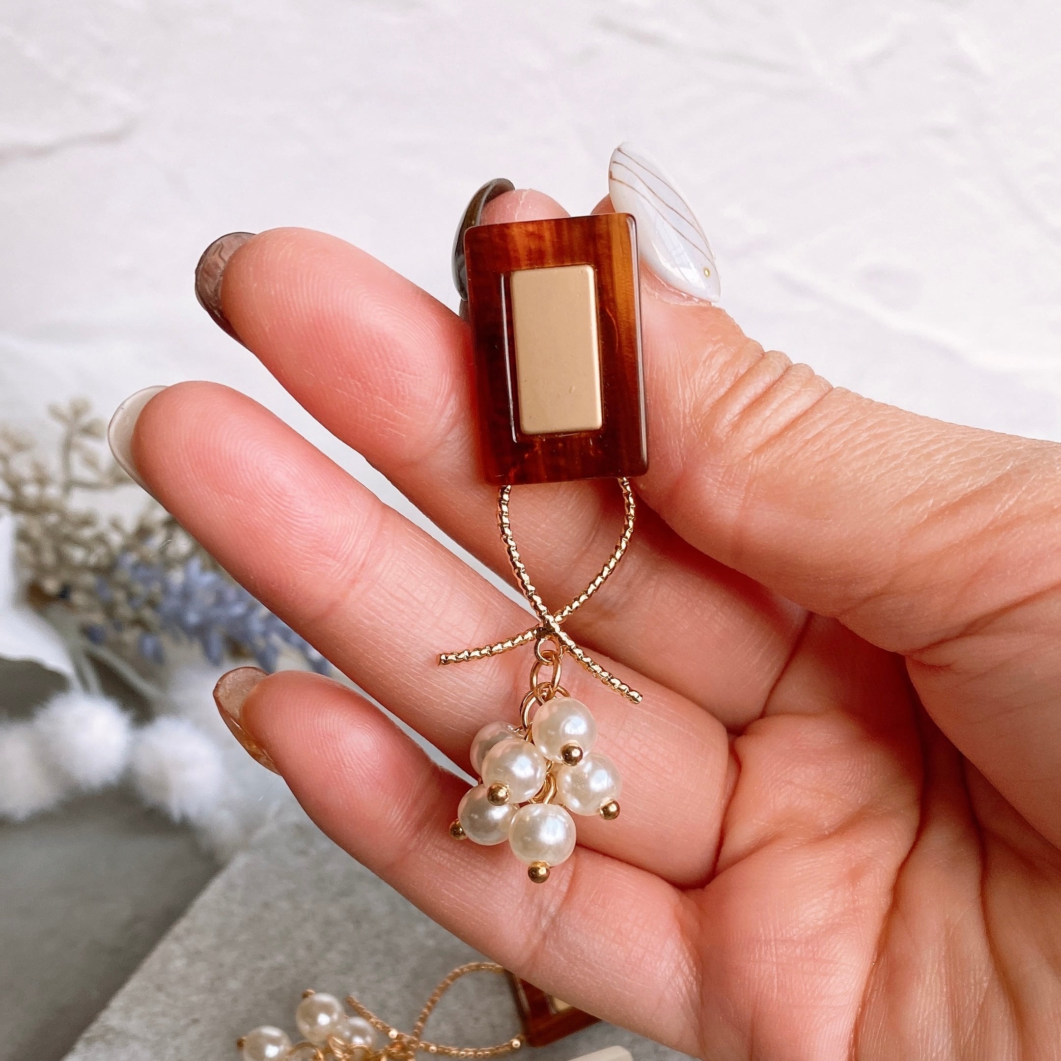 ベッコウ風のアクリルボタンをアクセサリーに。
