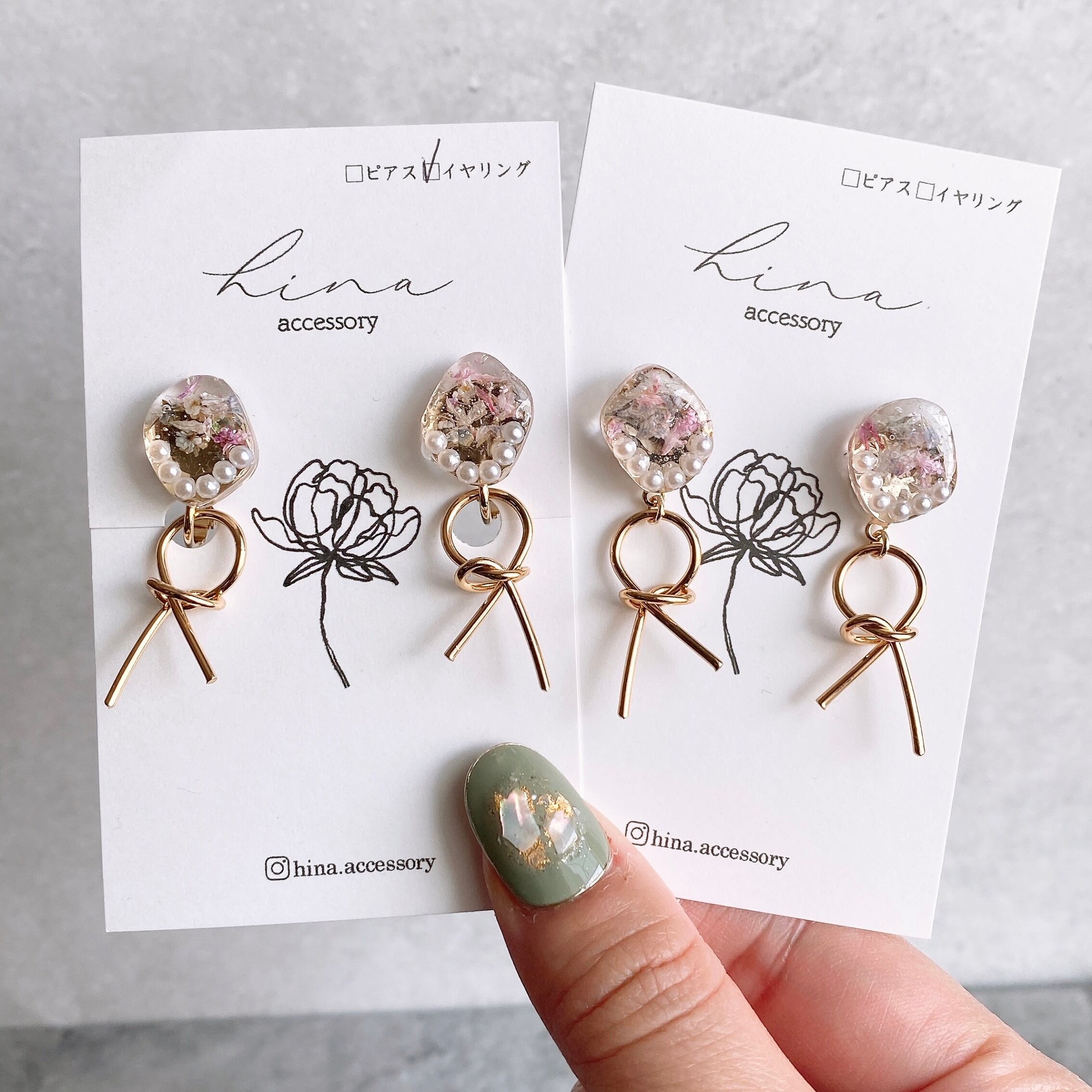 レジン部分だけでも十分に可愛いですが、ゴールドの結び目チャームでこなれ感を演出。