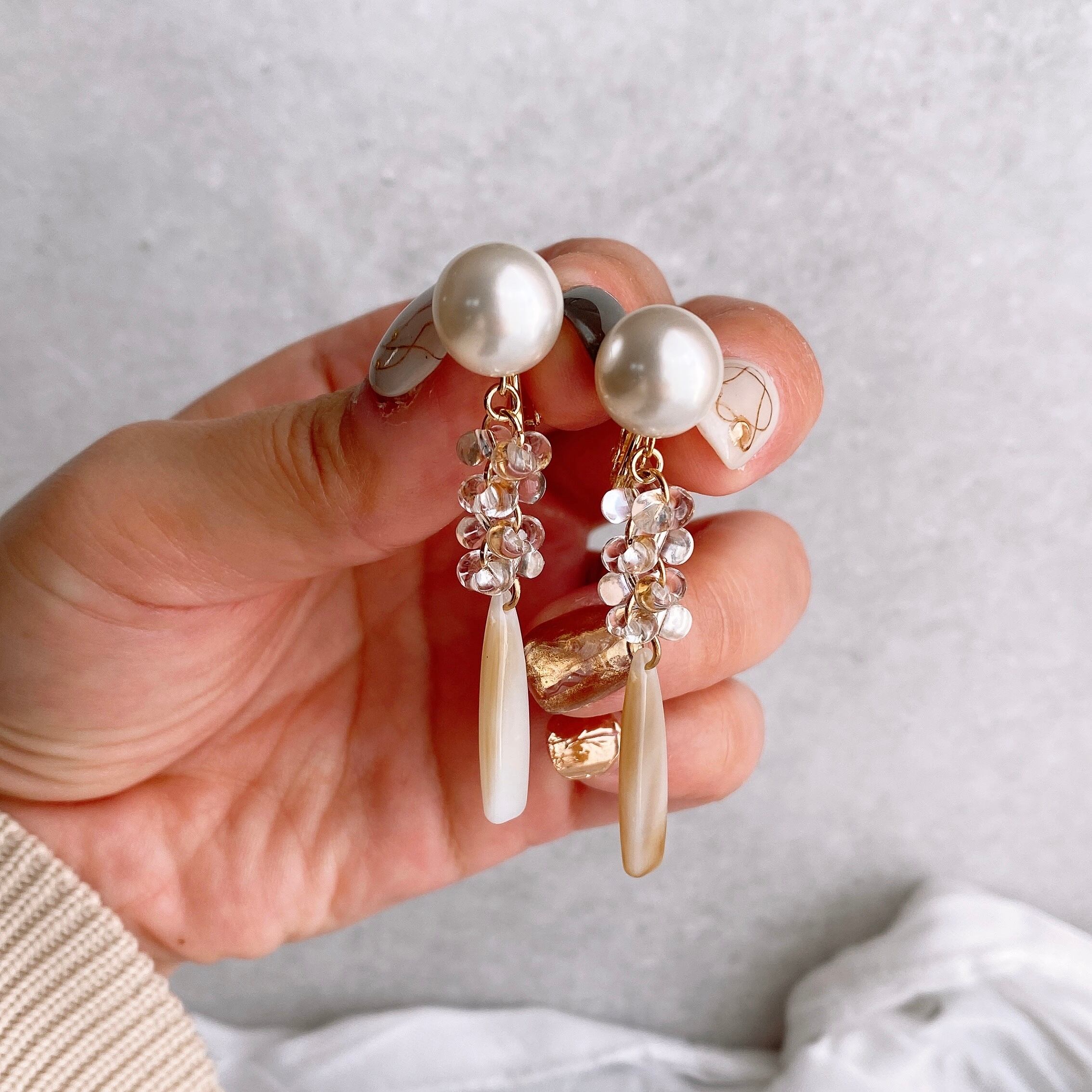 艶やかな一粒パールに、クリアビーズをあしらった透明感のあるアクセサリーです。
