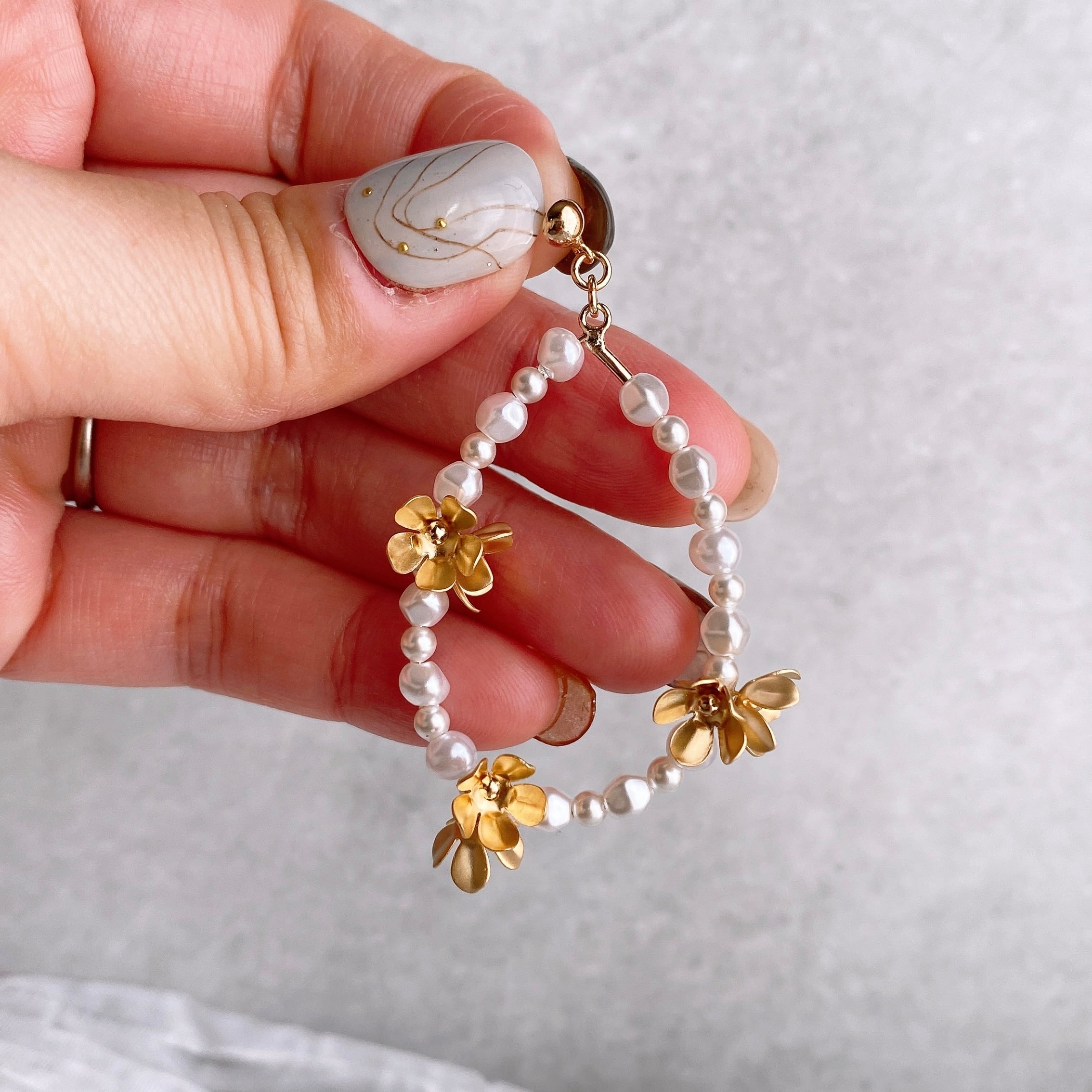 ホワイトとゴールドの2色でできているので、色味のあるお洋服にも合わせやすいアクセサリーです◎
